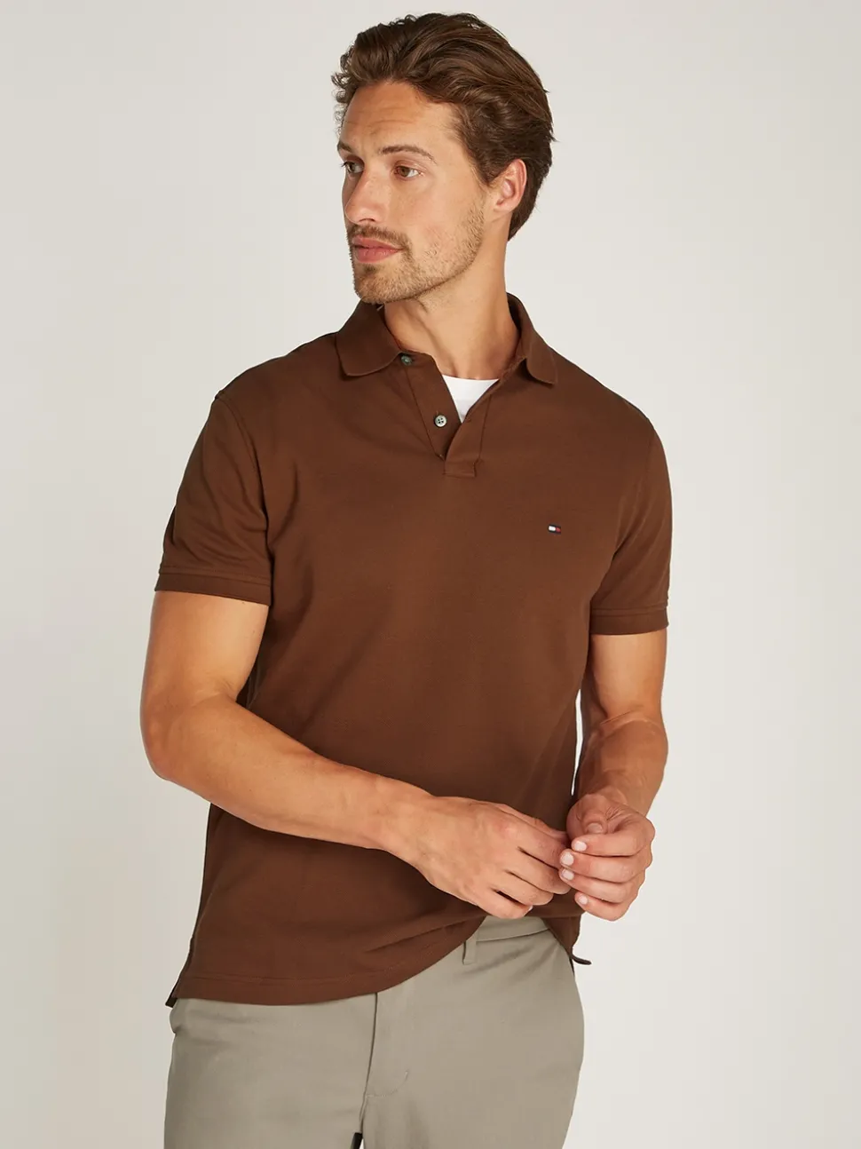 A classic from Tommy Hilfiger, the 1985 polo is cut to a regular fit for a smart casual look, crafted from a cotton stretch fabric to enable easy movement and breathability. Designed in a peach rich mocha colour featuring a polo collar and classic three button placket this polo is detailed with Tommy Hilfiger flag embroidered on the chest. An iconic piece every man needs in their wardrobe which can be worn casually with shorts in the summer, fit in to your smart casual wardrobe by pairing with a chino.