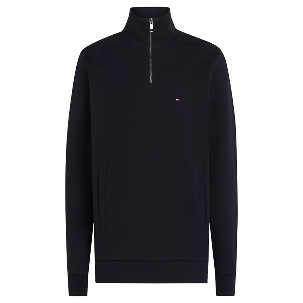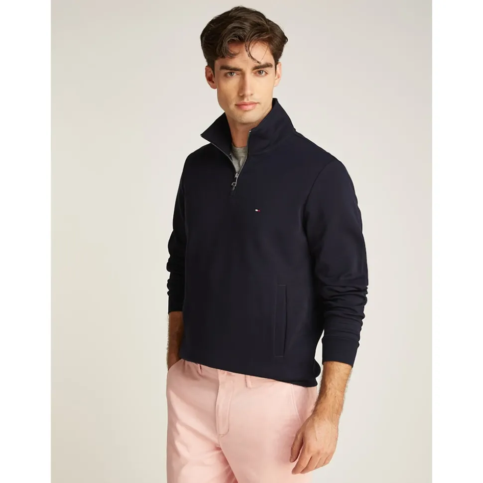 The Tommy Essential In Techno Quarter Zip is a regular-fit pullover made from a comfortable cotton blend and Intechno knit. Featuring a mock turtleneck and a stylish quarter-zip, it offers both versatility and modern flair. The iconic Tommy Hilfiger flag embroidery on the chest adds a signature touch. Pair it with slim-fit jeans or chinos and casual sneakers for a laid-back look!