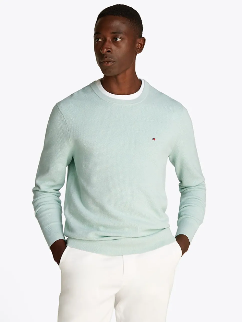 The Tommy Essential Structure Crew Neck offers a regular fit with a classic crew neck and long sleeves. Designed with elasticated cuffs and hem, it ensures a comfortable and snug fit. The textured detail throughout adds visual interest, while the iconic Tommy logo on the chest provides a signature touch. A versatile wardrobe staple for any season.