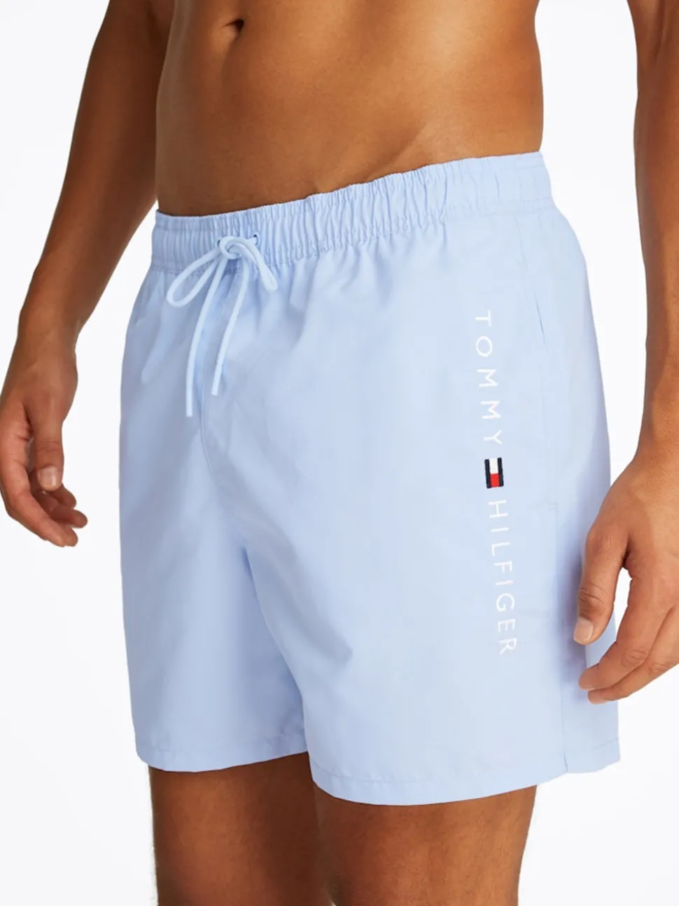 Tommy Medium Drawstring Swim Shorts offer both style and comfort. With an elasticated drawstring waist, two side slip pockets, and the iconic Tommy Hilfiger logo on the front, they are the perfect addition to your summer wardrobe. The global stripe detailing on the back pocket adds a trendy touch, making these shorts a stylish choice for the beach or poolside relaxation.