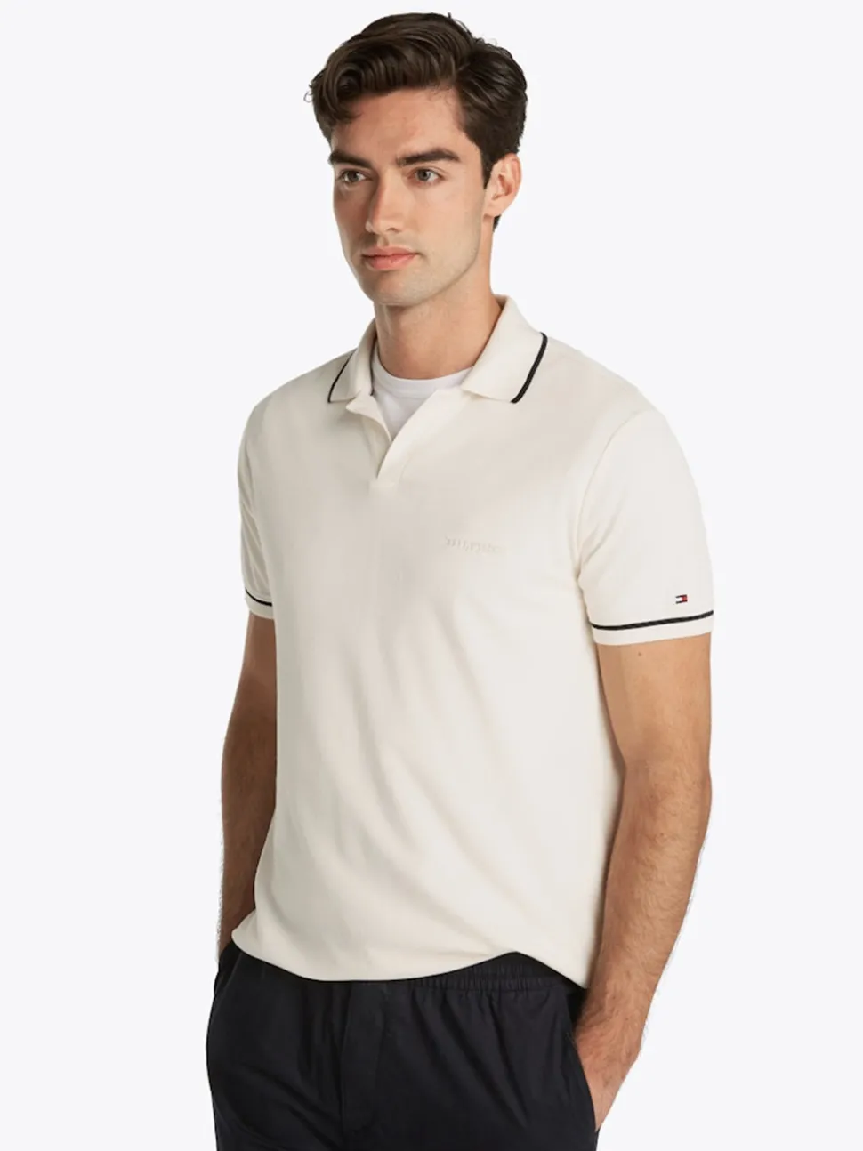 The Tommy Open Collar Tipped Polo offers a classic regular fit, crafted from 100% cotton for all-day comfort. Featuring short sleeves and an open collar with stylish tipped detailing, this polo is a timeless wardrobe essential. Finished with the signature Tommy logo flag, it’s perfect for a smart-casual look.