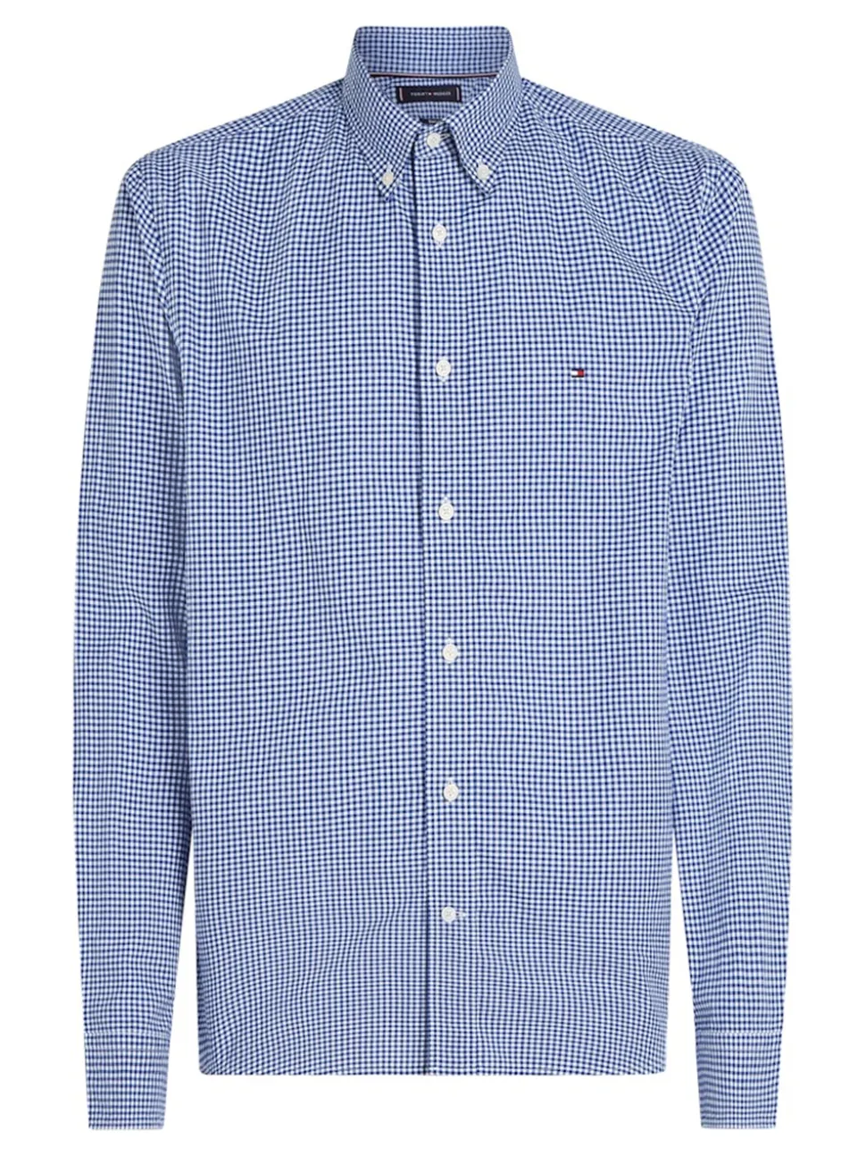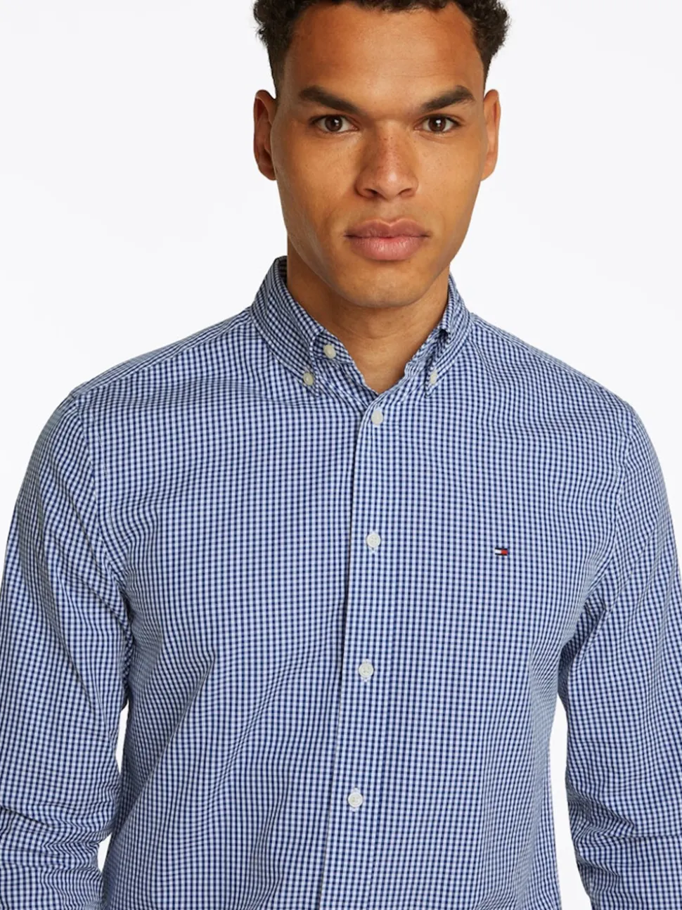 The Tommy Hilfiger Poplin Gingham Shirt. Crafted from 100% cotton for breathable comfort, this regular-fit shirt features a classic all-over gingham check pattern that’s both versatile and sophisticated. Designed with a button-down collar for a polished look, it’s finished with the signature Tommy Hilfiger flag embroidery on the chest, adding a touch of iconic branding. Ideal for smart-casual occasions or everyday wear.