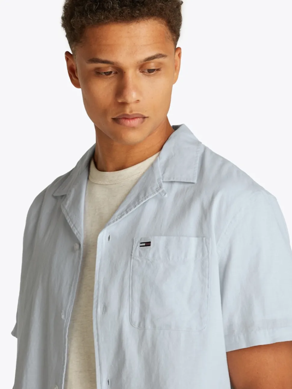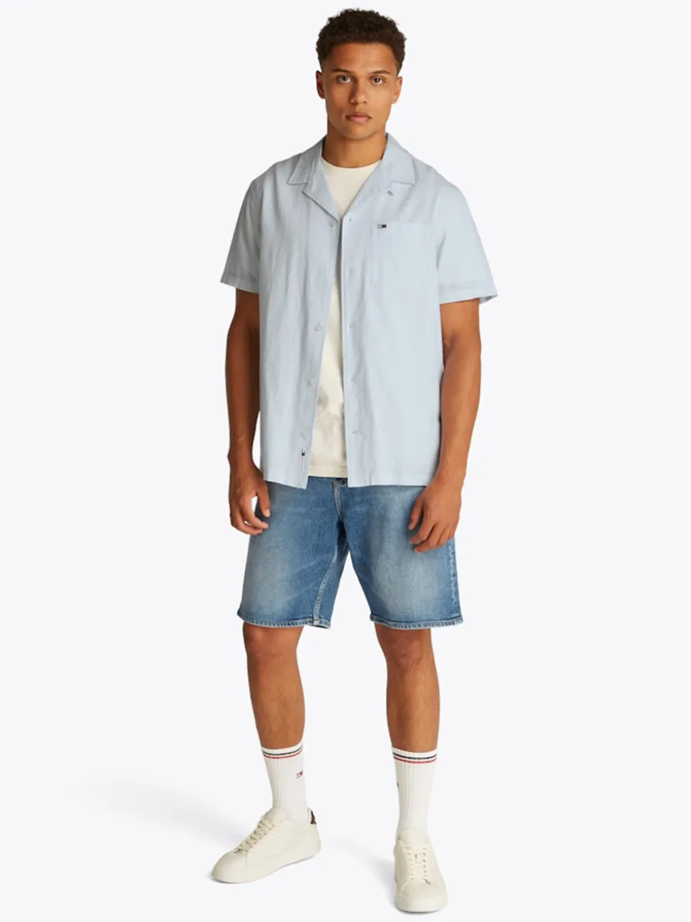 Tommy Jeans Classic Linen Cuban Collar Shirt – Blue